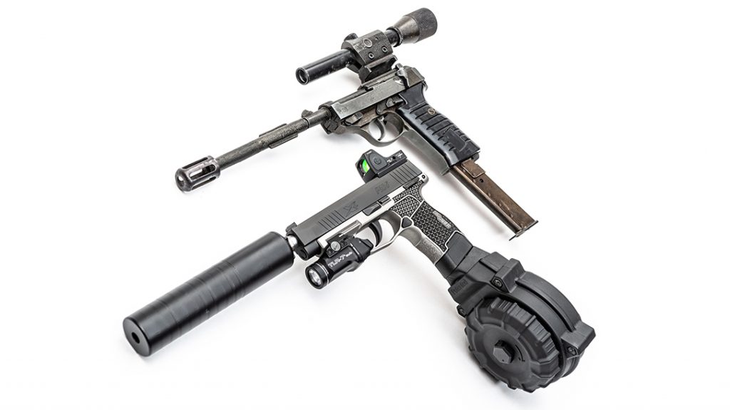Grip modules swap easily while offering the option of a manual safety if desired. Ingenious aftermarket American tinkerers developed threaded barrels, light modules, electronic red-dot sights and properly-scaled sound suppressors. The end result is the absolute perfect spy gun.