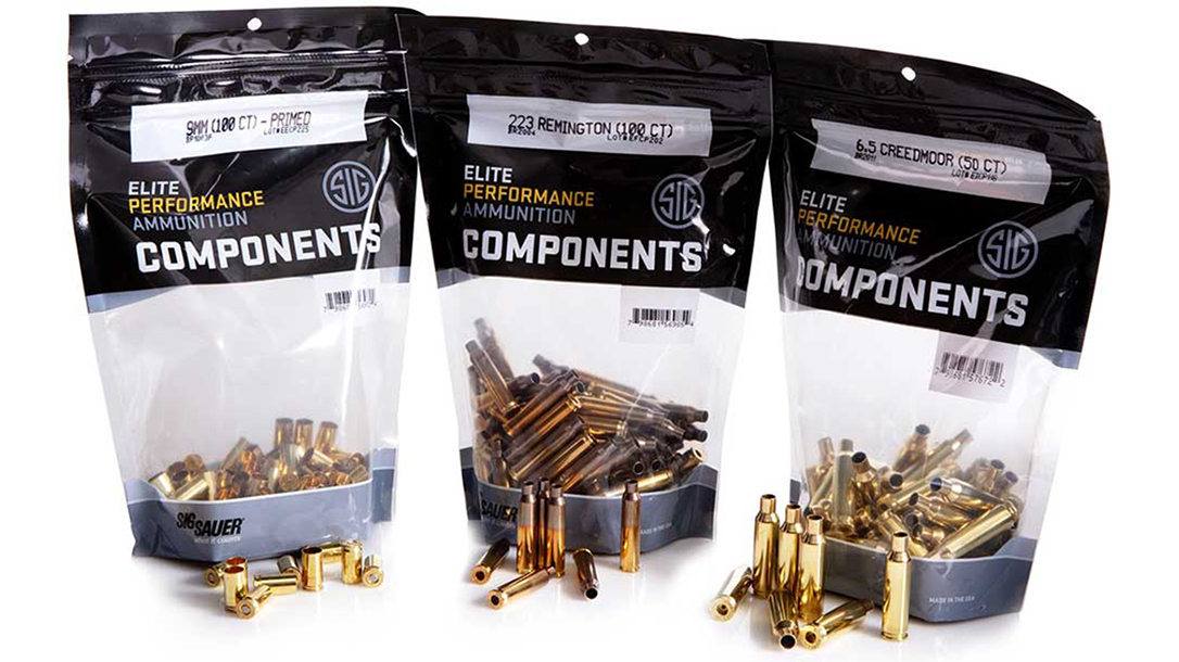 Right now Sig is offering pistol cases, primed or unprimed, in bags of 100 in ,380 Auto; 9mm Luger; .357 SIG; .38 Spl; .357 Mag; .40 S&W; 10mm; and .45 Auto. Furthermore, unprimed rifle component cases are available in bags of 50 in .223 Rem; .22-250 Rem; .243 Win; .300 BLK; .300 Win; .308 Win Mag; and 6.5 Creedmoor. The company says .270 Win. and .30-06 Springfield are coming soon.