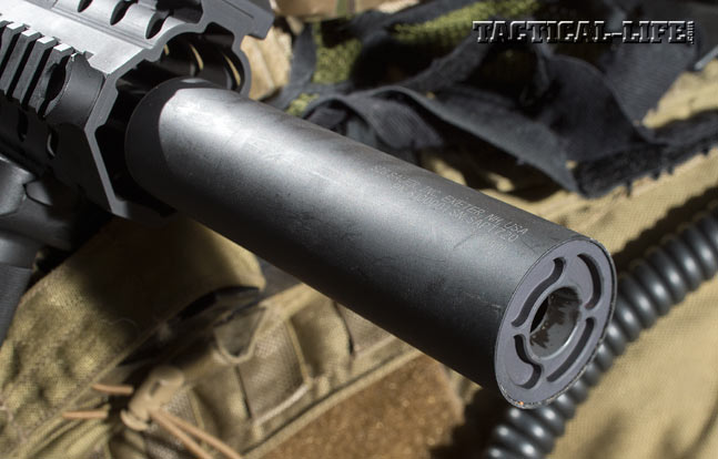 Suppressed, the MPX is almost completely ear safe (unless you’re shooting steel plates), and it’s easily usable on operations without hearing protection. Even heated up during sustained fire, there was no visible shift in point of impact. Because of the threaded barrel, the suppressor is easy to remove, making for a really compact package. The 13.5×1 LH thread pitch keeps the suppressor from coming loose under sustained automatic fire.