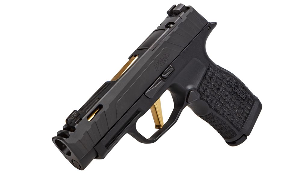 “The SPECTRE family of pistols is SIG Custom Works feature-rich polymer pistol line that is fine-tuned for performance. The custom-designed slide and gold features of the P365XL SPECTRE Comp make this latest addition to the SPECTRE series noticeably distinct,” said Tom Taylor, Chief Marketing Officer and Executive Vice President, Commercial Sales, SIG SAUER, Inc. “However, the true standout feature of the P365XL SPECTRE Comp is the uniquely integrated compensator that reduces muzzle flip and felt recoil by up to 30%, and because of the design will never come loose or cause function issues. The P365XL SPECTRE Comp offers all the benefits of a compensated pistol in a reliable, concealable, everyday carry package.”