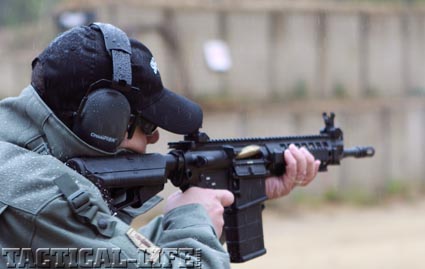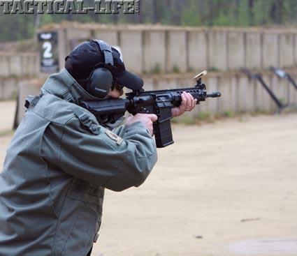 Despite the short 12-inch barrel, which keeps the whole gun down to an overall length of less than 35 inches, the rifle handled recoil very well and was easy to keep on target, but it certainly announces itself with a loud bark. The gas piston system also makes it well suited for suppressed fire, and with standard 20-round Magpul PMAG magazines, there is plenty to smile about.