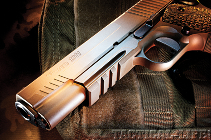 The Sig Scorpion 1911 employs a non-traditional external extractor located to the rear of the pistol’s ejection port.