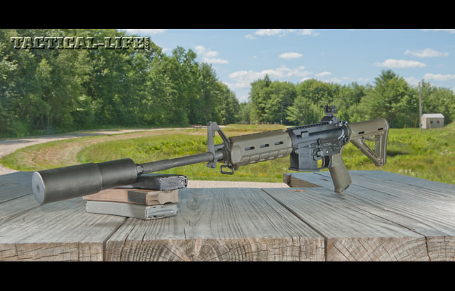 Spending most of a day with this rifle, it proved to be 100 percent reliable with the suppressor attached. One of the greatest drawbacks of suppressor use on DI guns is excess gas in your face. The greater the backpressure, the more this occurs. The 5.56mm SIG-SD was better than most in this area. After several rounds, including some multiple-round strings, it was there, but it wasn’t very noticeable. Using a larger outside diameter (allowing for more volume) really helps, especially with 5.56mm rifles. This typically reduces backpressure, meaning less gas ends up back in the action or in your face. It also contributes to greater reliability, as there’s less effect on bolt speed and less fouling. This particular M400 was a 16-inch-barreled version, so reliability wasn’t really in question. We did not get to a test short-barreled version, but my guess is that it will still work well with the SIG-SD mounted.