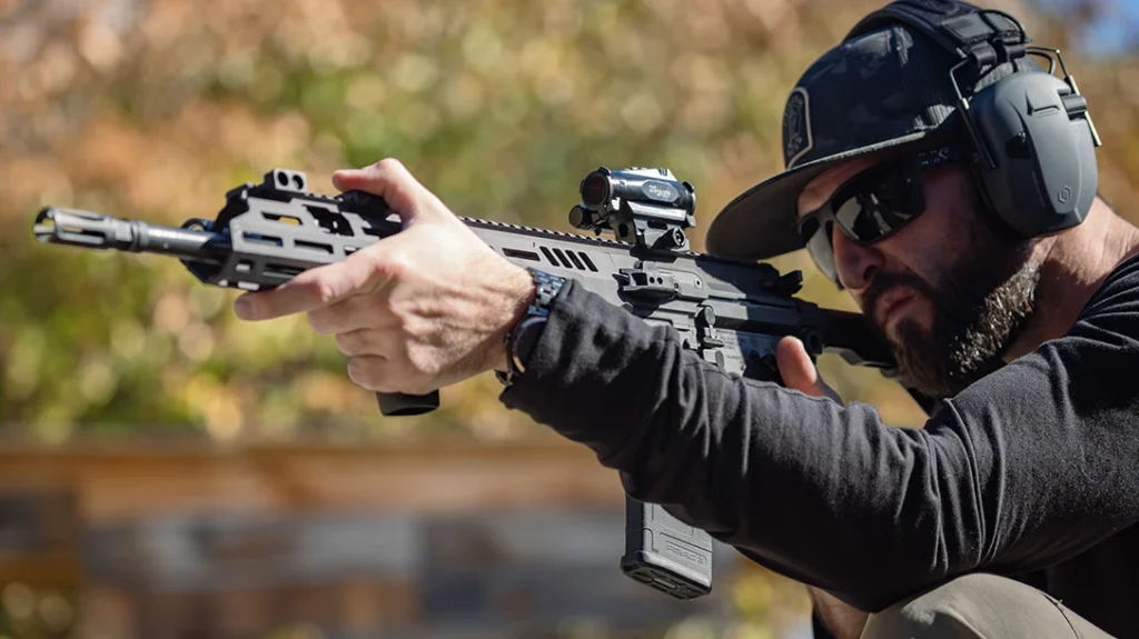 A standout feature is the rifle’s non-reciprocating rear and side charging handle system. This ambidextrous design allows intuitive manipulation from multiple shooting positions and maintains shooter safety and comfort under dynamic conditions.