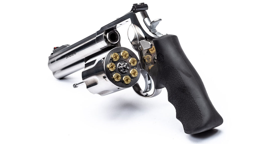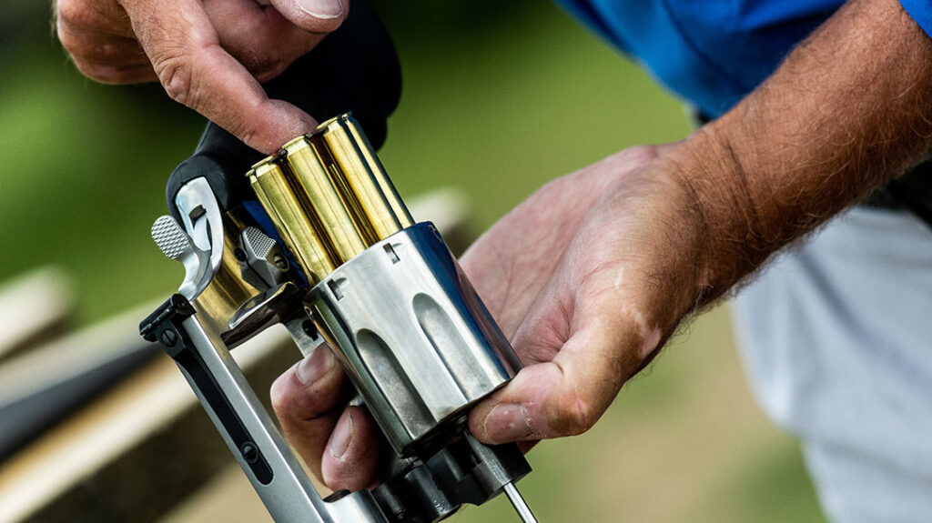 Suffice it to say, you will not be doing speed reloads, like Jerry Miculek does with his M625 loaded with .45 ACP rounds that he literally throws into the cylinder. Given the gun’s chambering, you should not be hunting dangerous game with it, anyway.