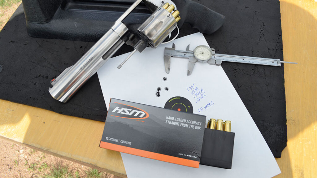 My two best groups were 1.25 inches to 1.39 inches at 25 yards. My only criticism of this revolver is there is no provision for mounting a red-dot or low-magnification scope to stretch the M350’s legs. I know this gun is capable of making distant hits—beyond what I am capable of with iron sights.