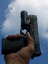 My friend Chris Christian, an outdoor writer, is a big fan of the M&P and has been shooting the 9mm version for some months now in IDPA competition. In July of 2007, he used the .45ACP version (slick slide, no thumb safety and no disconnector) to shoot against the 1911s in the Custom Defense Pistol category at a match in Jacksonville, Florida. Chris came in first place overall in that division by a significant margin.