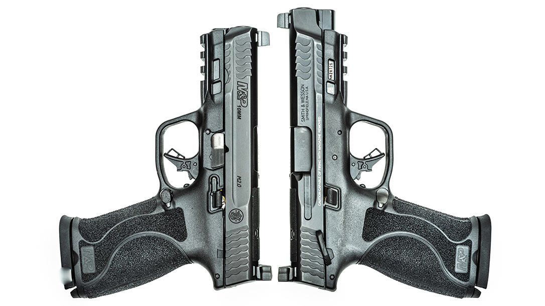 Each variant of the S&W 10mm M2.0 will ship with a total of two 15-round magazines. Each slide is also pre-cut for optics with a cover plate included. All the better to see Yogi Bear’s evil twin.