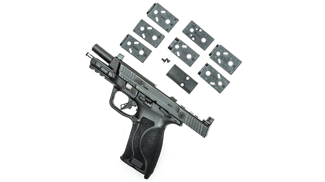 S&W was kind enough to include a nice selection of plates for mounting a reflex sight to accommodate the various footprints on the market. It was time to pick out and mount a red-dot sight for this 10mm beast.