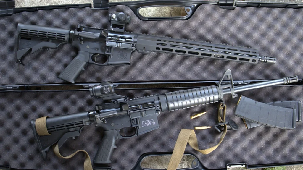That either differs in its gas system arrangement turned out to be a nonfactor. A midlength gas system drags out the cycling of the rifle and reduces bolt velocity and gas pressures the bolt carrier group are subjected to. This reduces recoil and produces less wear on the parts over time. At least, that is the theory.