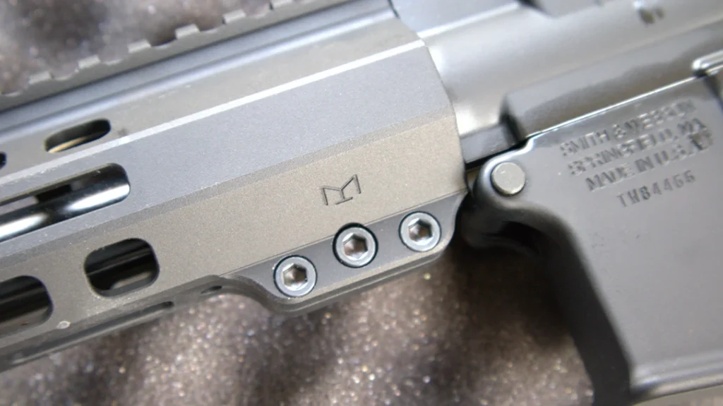 M&P Sport IIIs also inherited the original Sport’s integral oversize trigger guard. The first appreciable difference is the Sport III uses a Midwest Industries aluminum handguard. It is fifteen inches in length with a Picatinny rail along the sighting plane and M-Lock slots at the sides and bottom for any attachments. It is also free floated, unlike the polymer slick-sided M4 handguards of the Sport II.