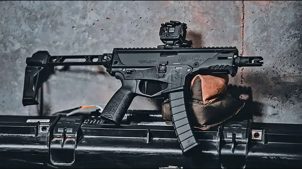 A polymer receiver helps keep weight down. The pistol weighs just 53.6 ounces overall. Meanwhile a carbon steel barrel with a 1:15-inch twist provides the heart of the platform. It also includes a functioning charging handle and shell deflector, welcome additions.