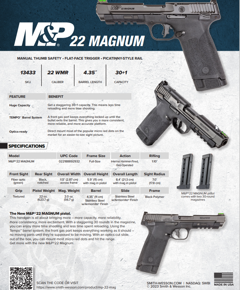 The S&W M&P22 Magnum retails for $649. For even more info, visit smith-wesson.com.