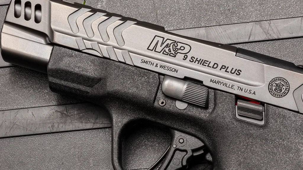 The pistol comes with an improved trigger system, providing a crisp, clean break for a superior shooting experience. Additionally, it features a slide cut for the direct mounting of red dot sights. Which makes it easier to customize and optimize for precision shooting. An aggressive slide design further enhances handling and overall shootability, while maintaining the streamlined profile that makes the Shield Plus an ideal choice for concealed carry.