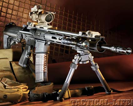 Aside from sights and a light, the S&W M&P15 VTAC II comes with everything you need—even a sling and light mount. Shown with a Trijicon 4×32 ACOG with Docter sight, SureFire Scout Light and Atlas bipod.