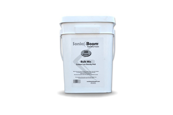 There are three types of exploding targets currently being sold by Sonic Boom: Bulk Mix, Rimfire Exploding Targets, and Rifle Targets. The Sonic Boom Bulk Mix is a multiple-use target mixture which weighs 20 pounds and contains custom low density prill. The Rimfire variant comes weighs one pound, comes with targets per jar and requires a 17gr bullet traveling at 1000 FPS. The suggested round for this model is .22lr or anything larger. It is universal, so it may be used for shotguns, handguns, and rimfire. Suggested rounds for the Rifle Target variant, which comes in one pound, two pound and four packs, is .223 and larger. Both the rimfire and rifle targets contain a customized oxidizer and catalyst. MSRP is $129.99 for the bulk mix, $24.99 for the rimfire exploding targets, $9.99 for the 1 pound rifle exploding target, $14.99 for two pounds, and $36.99 for the four pack. See below for additional details.