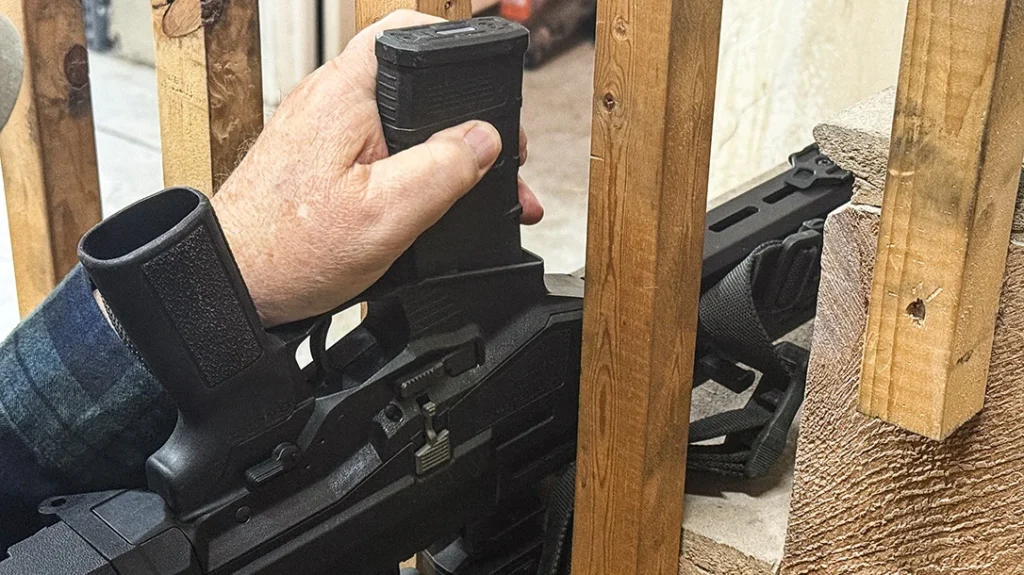 Given most don’t stand there and get shot, your ability to perform that load on the move to cover is far more critical. Assuming you are fighting your way out of trouble, likely with your family, you probably have one hand free. Maybe you are holding on to a child, moving someone out of the way, opening a door, all kinds of stuff. No pre-shooting run throughs like in a match; you deal with it as it happens.