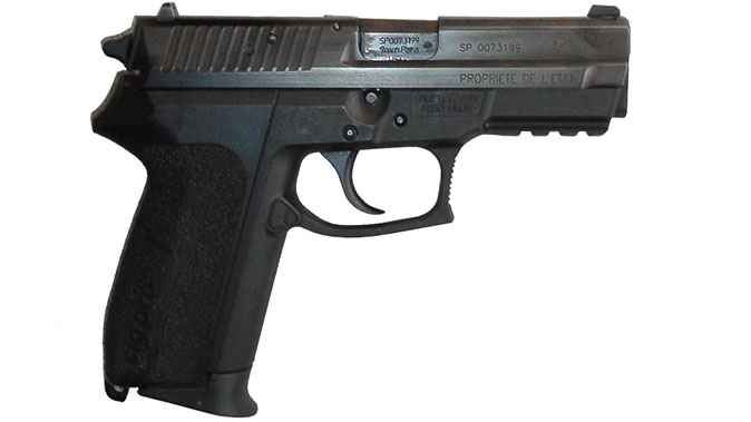 Some quick internet digging reveals that the main sidearm of the French National Police is the Sig Sauer SP 2022.