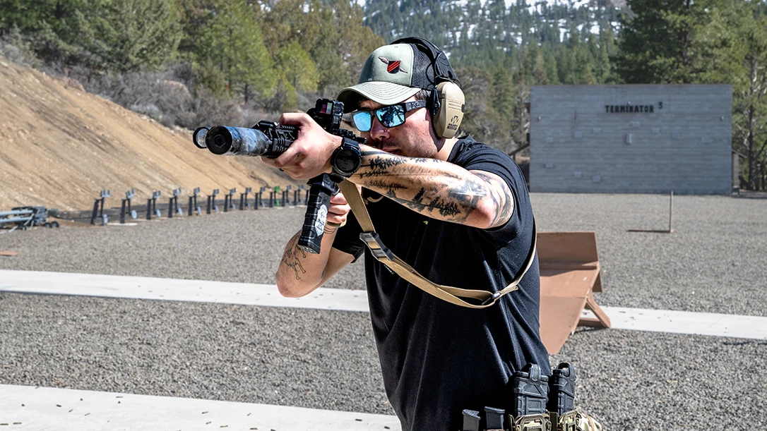 I brought a Primary Weapons System MK111, equipped with a Primary Weapons System BDE 556 Ti suppressor. The BDE 556 is a 3D-printed aerospace-grade titanium suppressor that’s also tough as nails. During training, I managed to get this device so hot that it changed colors, and that was with a normal and controlled rate of fire—no mag dumps or anything crazy like that. I did experience some stoppages due to how fouled up my weapon became.