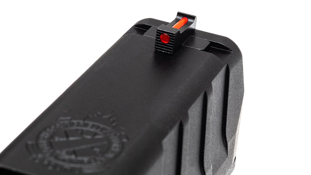 The 10mm version I received shipped with suppressor-height, three-dot sights for co-witnessing with an optic. It also includes a reversible magazine release and an ambi slide stop/release for left-handed shooters. Additionally, it is available with or without a manual thumb safety.