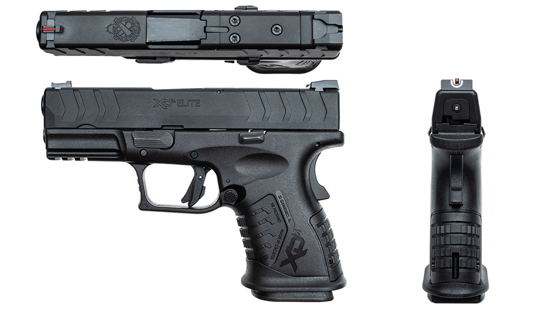 With a shorter frame than the S&W M&P model, the XD-M Elite Compact is designed more for concealed carry than open, or duty carry. The 10mm XD-M Elite ships with two 11-round magazines. But I happened to be online at Springfield’s store and noticed they also sell extended, 15-round magazines with grip sleeves.