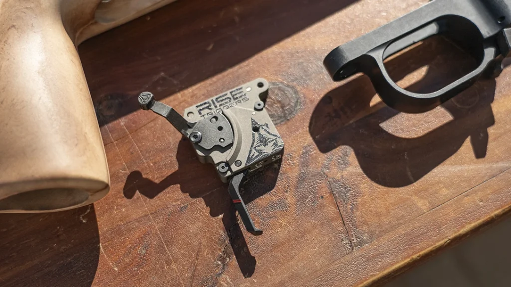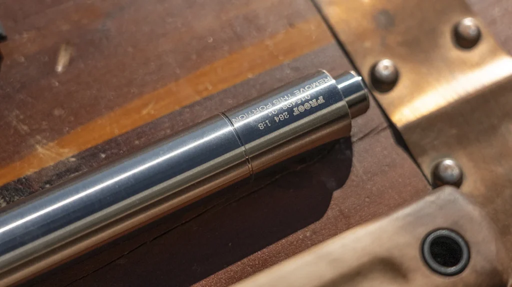 I chose a Proof competition profile barrel. It’s my standard steel go-to. It would be 24 inches in finished length and of course threaded for muzzle brake or suppressor. For the trigger I looked to Rise Armament and their Reliant Pro. This is an excellent trigger that has an adjustment range of 1 to 3 pounds, and it has great safety built into it. It seems like most people running a 700 type action are using a Timney or Trigger Tech Diamond. Each has its own distinctive feel. The Rise’s feel is in between these two triggers in my opinion.