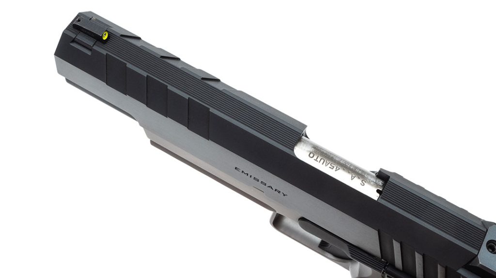 In some ways, the new Emissary is a bit of a contradiction. It offers stark beauty and elegance with its two-tone appearance while serving up workaday features that make it a practical and extremely effective fighting pistol.