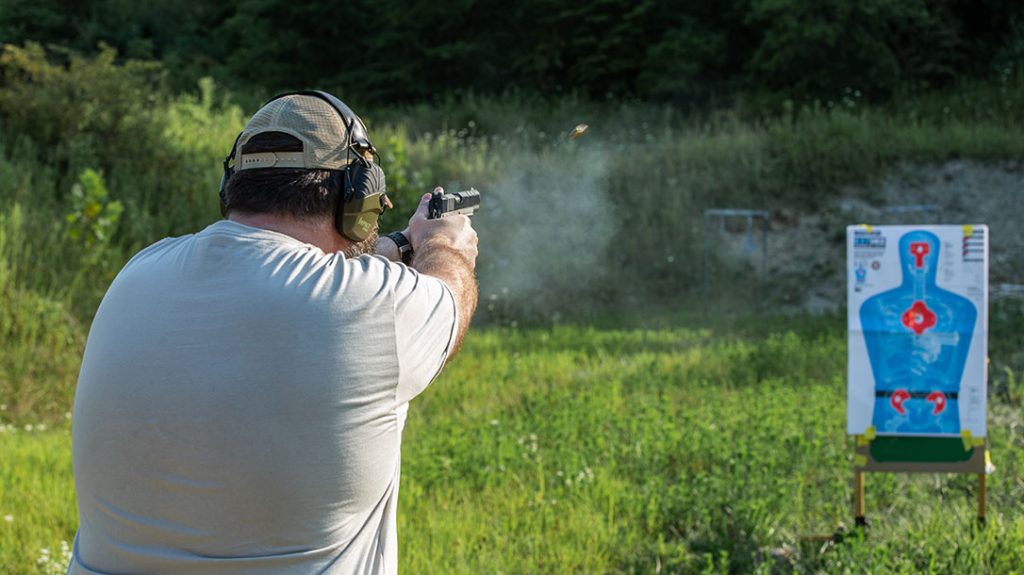 Average group sizes were well under 2 inches. The single best five-shot group was just 1.38 inches, and the best average group size was 1.57 inches. That was shot with Winchester’s 230-grain Personal Protection load. However, the rounds from Sig Sauer and Speer were close enough on average to make it dealer’s choice.