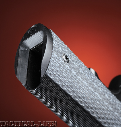 The beveled mag well makes reloading with gloves more manageable and aids in reloading in high stress conditions.