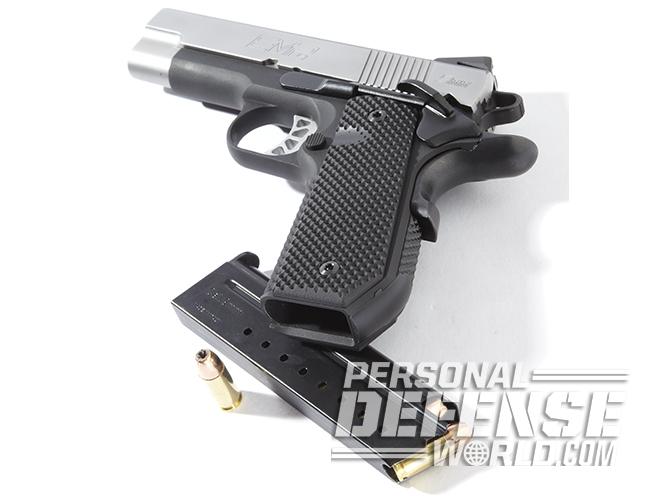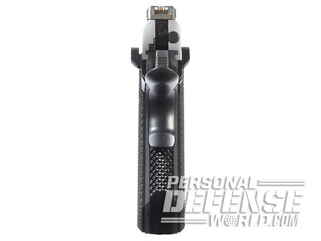 I was especially taken with how the aggressively checkered frontstrap and mainspring housing teamed up with the G10 Posi-Lock grip panels to ensure a firm purchase, even with perspiring or oily hands, and enhance recoil control. A nice touch was the beveled area on the left grip panel; it makes it easier to access the magazine release.