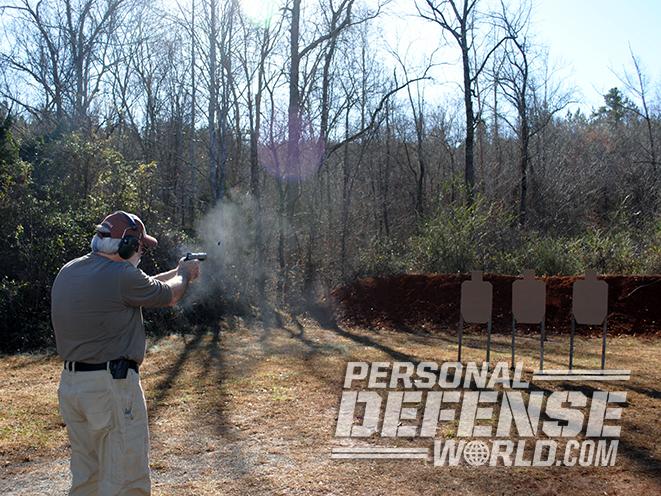 The drills looked like this: At 5 yards, I drew the pistol from its holster. Then fired three rounds at each target with just one hand. Lastly, I reloaded and repeated the shots. At 10 yards, I drew the pistol and double-tapped each target. I fired with a two-handed grip before reloading and reengaging each target. I repeated this drill twice more. Finally, at 15 yards, I drew the pistol, engaged each target by firing three carefully aimed shots, reloaded and repeated.