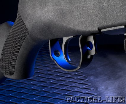 The manual safety, found on the forward edge of the triggerguard, is easy to reach with the trigger finger and locks solidly in place