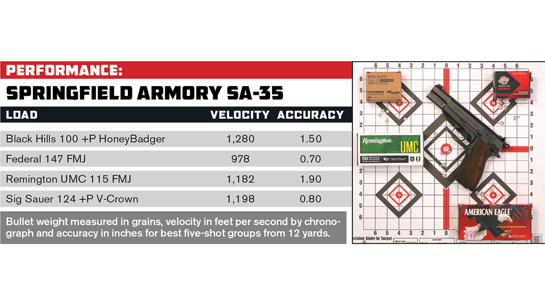 Oddly, the SA-35 suffered the rare failure to extract just with Remington 115-grain FMJ. It ran absolutely everything else flawlessly and shot plenty straight. Remington makes great ammo. Weird.