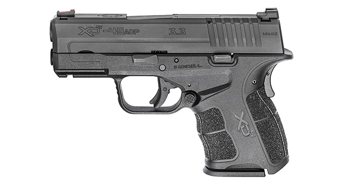 The XD-S Mod.2 also comes with an SA front sight with Ameriglo’s Pro-Glo green tritium in a yellow luminescent circle, paired up with an SA tactical-rack serrated steel rear sight with a U-notch for easy target acquisition in low-light scenarios. The enhanced short-reset and consistent trigger, the company says, make this gun a solid choice for defensive carry.