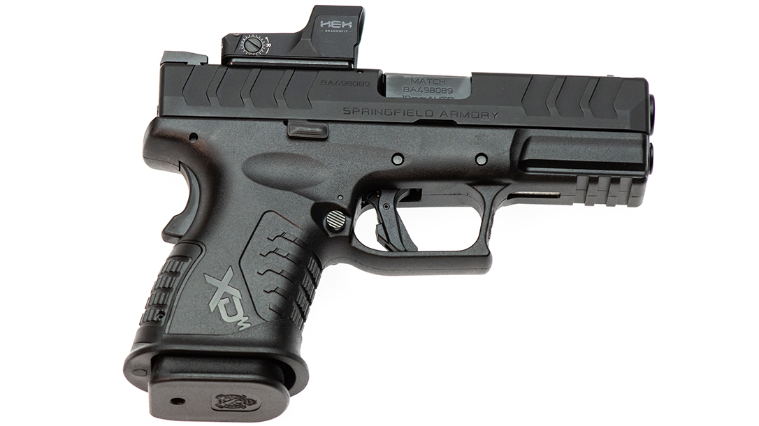 Packing that much power into a compact pistol can make for a gun that is a challenge to shoot. Springfield eliminates sight radius concerns with the optional Hex Dragonfly red dot with an easy-to-spot 3.5 MOA dot. The pistol’s 1.2-inch width may seem on the broad side for modern compact pistols, but the double-stack 10mm rounds have to go somewhere. The breadth helps to fill the hand and distribute any recoil energy not absorbed by the dual captured recoil assembly.