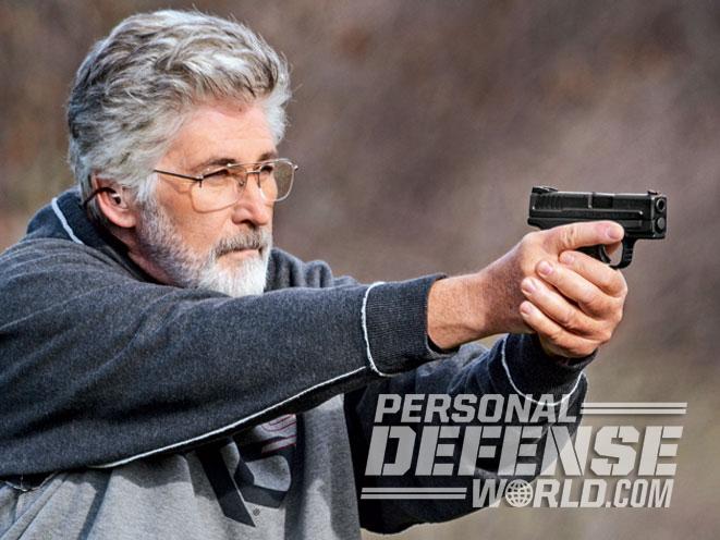 I was able to get my hands on the XD Mod.2 9mm, .40 S&W and .45 ACP pistols for testing, and the trigger pulls averaged between 5 and 6 pounds. I ran the 9mm with Sig Sauer’s 124-grain Elite Performance V-Crown JHPs, Speer’s 115-grain Gold Dot hollow points (GDHPs) and Hornady’s 115-grain Critical Defense FTX ammo, firing at a Speedwell B-27 target 15 yards away. The 9mm XD Mod.2 balances well in the hand and stays put as intended with the Grip Zone texturing. The recoil proved moderate, as is usual for the XD’s dual recoil spring design, and sight reacquisition was notably easier with the XD-S-style fiber-optic front sight. The best groups for all three 9mm loads ran from 1.27 to 1.7 inches—excellent accuracy for a pistol this size at 15 yards.