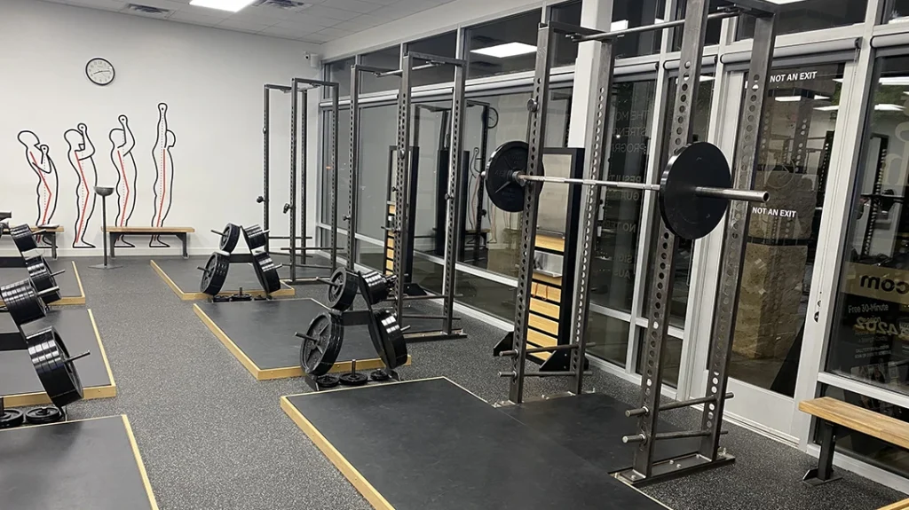 - The Deadlift: An exercise that begins with the loaded barbell sitting on the floor and dispatches the body’s posterior chain to pick up the weight and pull it to the same height as one’s fully-extended arms, around crotch height. From the listed exercises, the deadlift tends to involve the most amount of weight and is done to close out each training session due to its intensity.