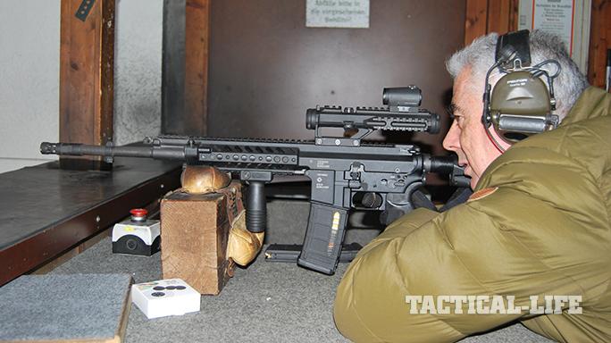 All of the shooting was done with the 16-inch, chrome-lined barrel. I was able to shoot about 150 rounds of RUAG’s 62-grain HC (SS109) ammo and only one box of Geco’s 55-grain Express FMJs. The STM-556 shot both the 55- and 62-grain bullets extremely well, and the average group sizes were 1.02 and 0.9 inches with the RUAG and Geco loads, respectively. Needless to say, I can’t wait to try this gun with match ammo.