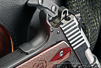 One of STI’s defensive 1911 beauties is their Guardian, built in the style of my favorite carry pistol—an Officers’ size frame topped by a compact slide and barrel (3.9 inches, in this case). Until someone bobs a full-size pistol’s frame down to Officers’ size and leaves the slide at 5 inches, pistols sized like the Guardian will be the best combination of concealability and effectiveness for me.