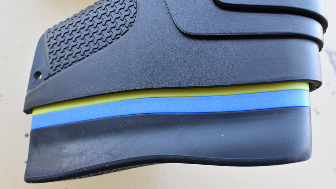 The XM1 also comes with a taller cheekpiece and larger hand grip that is easy to swap out. Colorful spacers in the buttstock can be removed to shorten the length-of-pull. The magazine, single-shot tray, and one Picatinny rail have embedded magnets for proper alignment with the breech. Not to mention a clever way of storing up to three magazines along the side.