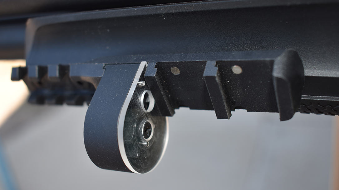 The two supplied picatinny rails attach to either side of the forearm, which also has a sling stud hole molded into it. A wide and curved, two-stage metal trigger is only adjustable for the pull length. Surprisingly smooth, it broke at a nice, light average of 2 pounds, 8 ounces. A cross-block safety is in the front of the trigger guard.