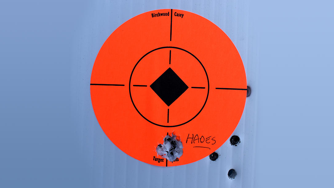 These 15.89-grain pellets knocked out one ragged hole at 20 yards. With this kind of accuracy and punch—over 20 foot-pounds of energy at launch—the XM1 will make a great small-game/pest-hunting tool as well.