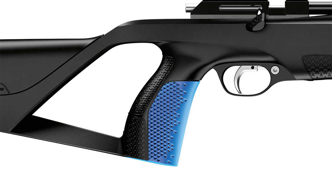 The vertical pistol grip is part of the polymer buttstock making this a thumbhole-style stock. A second sling attachment hole is molded into the toe of the buttstock. It is finished off with a soft rubber buttpad with a molded-in ergonomic design for additional comfort in the shoulder pocket.