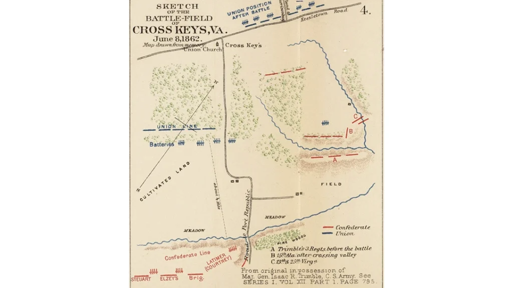Jackson’s Valley campaign ultimately culminated by two decisive victories at Cross Keys and Port Republic the day after. Though costly for Jackson’s army, the result of these Confederate victories caused the Union armies to retreat. This also allowed Jackson to freely move and rally with General Lee’s forces near Richmond prior to the Seven Days Battles. In turn, the Seven Days Battles were the culmination of McClellan’s original Peninsula campaign referenced above.
