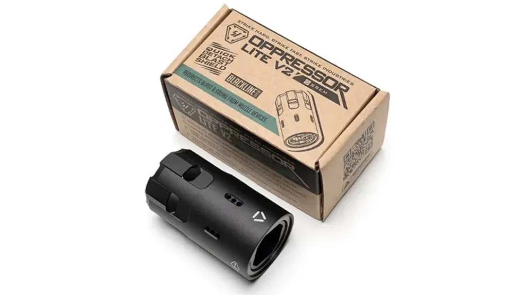 One of the standout design features of the Oppressor LITE V2 is its easy-to-use quick-detach mechanism. It is compatible with Strike Industries’ muzzle devices, allowing for a seamless transition between using the blast shield and running an open muzzle brake. The tool-less attachment system means users can install or remove the device with minimal effort, making it highly practical for different shooting environments.