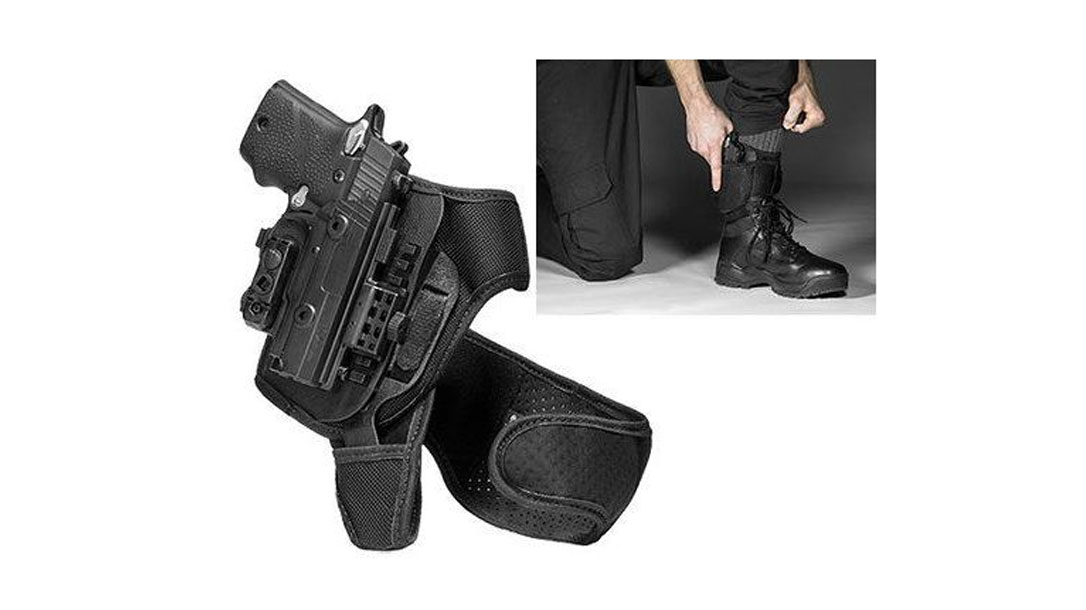 The Alien Gear ShapeShift Ankle Holster is a lightweight and comfortable ankle holster option. CoolVent neoprene also keeps you cool while wearing it. Additionally, a tuckable portion keeps the holster from moving around.