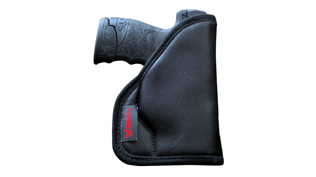 One tip, though, use a pocket holster; don’t just drop your firearm into a pocket. A pocket holster actually helps smooth out the harsh lines of a gun while covering the trigger, which makes this carry much safer. Be sure to get one with a sticky exterior and smooth interior, such as the Comfort Cling, for a quick draw.