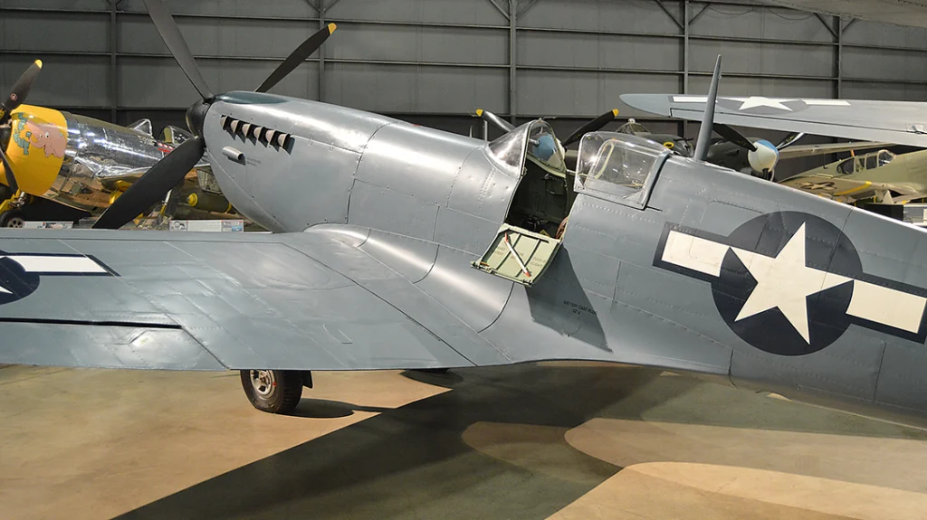 The Supermarine Spitfire is one of the most iconic fighter aircraft of World War II, celebrated for its versatility, performance, and sheer elegance. Designed by R.J. Mitchell and first flown in 1936, the Spitfire quickly became the backbone of the Royal Air Force (RAF) Fighter Command. Its sleek design, elliptical wings, and powerful Rolls-Royce Merlin engine contributed to its exceptional agility and speed, making it a formidable opponent in the skies.