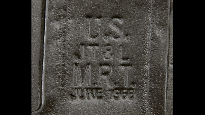 Beautifully handcrafted, the revolver holster comes in black leather and is marked “US JT&L MRT June 1966.”
