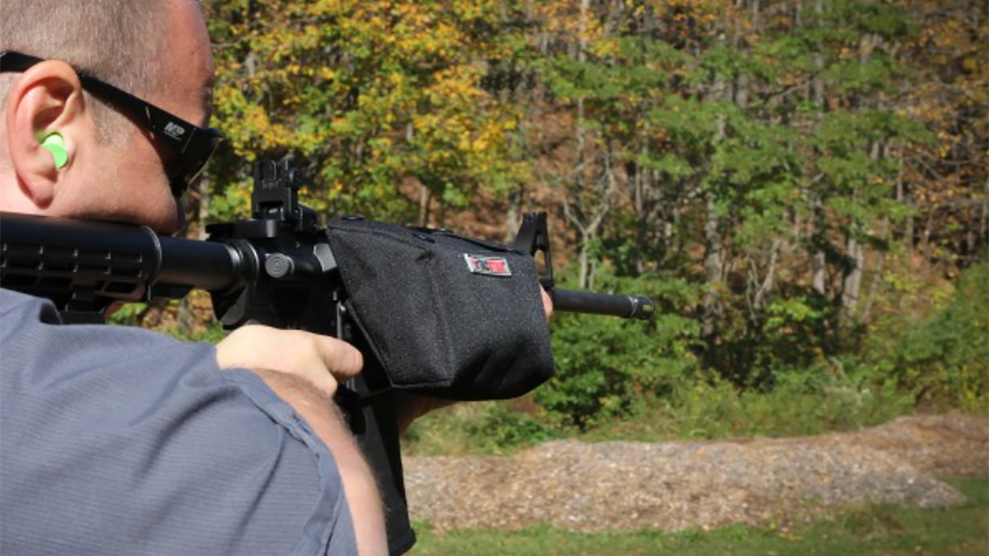 The TacStar brass catcher clamps directly to the Picatinny rail on flat top AR rifles. Conveniently, there are no rifle modifications needed in order for that to happen. In addition, TacStar says the the adjustable, low-profile mounting bracket won’t interfere with your iron sights or optics. Once mounted on the rail and positioned in front of the ejection port, the bag then catches the brass as you send rounds downrange.